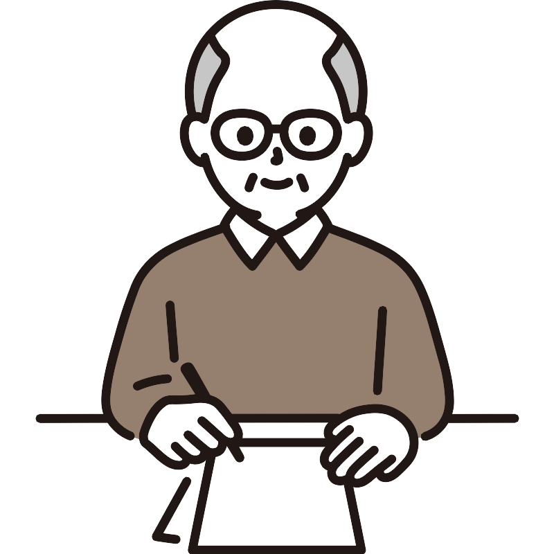 Мужчина, пишущий письмо пожилой человек