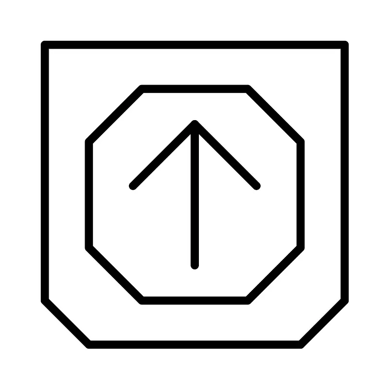 <svg width="800px" height="800px" viewBox="0 0 48 48" id="a" xmlns="http://www.w3.org/2000/svg"><defs><style>.b{fill:none;stroke:#000000;stroke-linecap:round;stroke-linejoin:round;}</style></defs><path class="b" d="M5.5,5.5v31.5588l5.4412,5.4412h26.1176l5.4412-5.4412V5.5H5.5Z"/><path class="b" d="M10.9412,17.4706v13.0588l6.5294,6.5294h13.0588l6.5294-6.5294v-13.0588l-6.5294-6.5294h-13.0588l-6.5294,6.5294Z"/><path class="b" d="M16.3824,22.9118l7.6176-7.6176,7.6176,7.6176"/><path class="b" d="M24,15.2941v17.4118"/></svg>