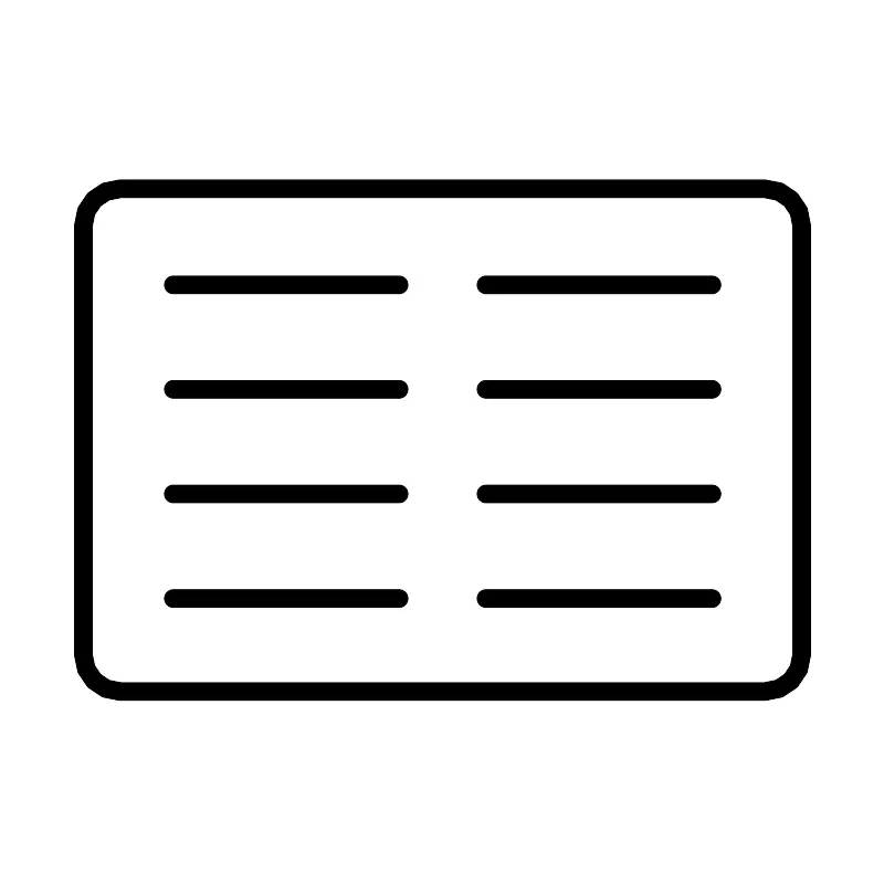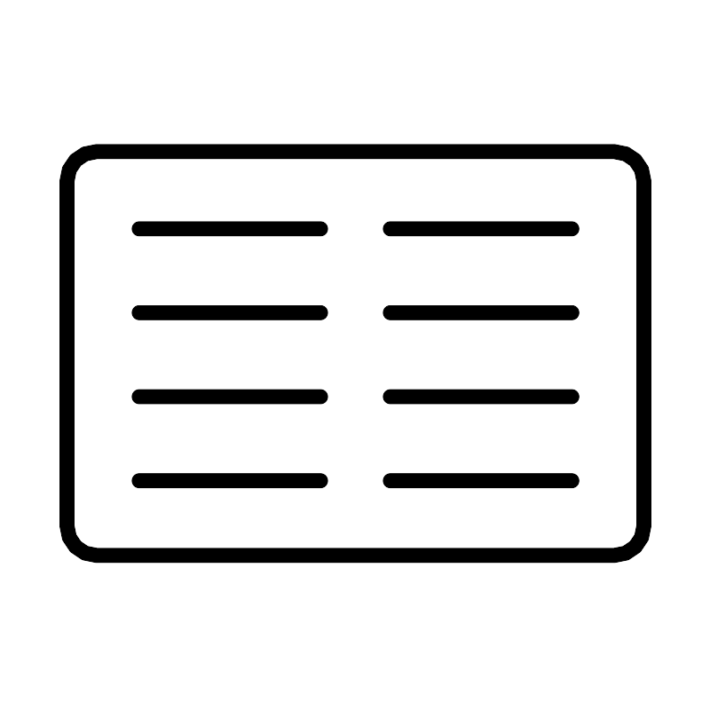 <svg width="800px" height="800px" viewBox="0 0 48 48" id="Layer_2" data-name="Layer 2" xmlns="http://www.w3.org/2000/svg"><defs><style>.cls-1{fill:none;stroke:#000000;stroke-linecap:round;stroke-linejoin:round;}</style></defs><path class="cls-1" d="M41.5,10.22H6.5a2,2,0,0,0-2,2v23.3a2,2,0,0,0,2,2h35a2,2,0,0,0,2-2V12.22A2,2,0,0,0,41.5,10.22Z"/><line class="cls-1" x1="9.38" y1="15.44" x2="21.64" y2="15.44"/><line class="cls-1" x1="9.38" y1="21.11" x2="21.64" y2="21.11"/><line class="cls-1" x1="9.38" y1="26.79" x2="21.64" y2="26.79"/><line class="cls-1" x1="21.64" y1="32.47" x2="9.38" y2="32.47"/><line class="cls-1" x1="26.36" y1="15.44" x2="38.63" y2="15.44"/><line class="cls-1" x1="26.36" y1="21.11" x2="38.63" y2="21.11"/><line class="cls-1" x1="26.36" y1="26.79" x2="38.63" y2="26.79"/><line class="cls-1" x1="38.63" y1="32.47" x2="26.36" y2="32.47"/></svg>