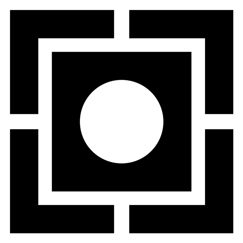<svg width="800px" height="800px" viewBox="0 0 512 512" xmlns="http://www.w3.org/2000/svg"><path fill="#000000" d="m21,20.9999v218.8438h59.1907v-159.6532h159.6533v-59.1907h-218.844zm251.1566,0v59.1907h159.7999v159.6532h59.0435v-218.8438h-218.8434zm-163.0315,88.125v293.7501h293.7503v-293.7501h-293.7503zm146.8748,58.7501c48.64,0 88.1253,39.4852 88.1253,88.125s-39.4853,88.125-88.1253,88.125-88.1246-39.4853-88.1246-88.125 39.4847-88.125 88.1246-88.125zm-234.9999,104.2813v218.8438h218.844v-59.1906h-159.6533v-159.6532h-59.1907zm410.9565,0v159.6532h-159.7999v59.1906h218.8434v-218.8438h-59.0435z"/></svg>