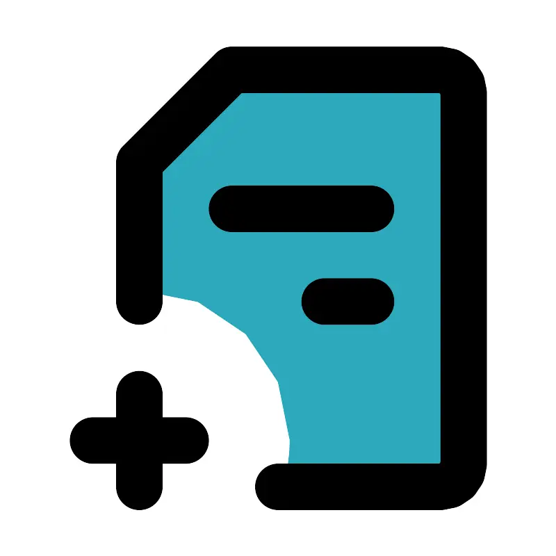 <svg fill="#000000" width="800px" height="800px" viewBox="0 0 24 24" id="add-file-12" data-name="Flat Line" xmlns="http://www.w3.org/2000/svg" class="icon flat-line"><path id="secondary" d="M12.5,19A6.5,6.5,0,0,0,6,12.5V7l4-4h9a1,1,0,0,1,1,1V20a1,1,0,0,1-1,1H12.18A6.3,6.3,0,0,0,12.5,19Z" style="fill: rgb(44, 169, 188); stroke-width: 2;"></path><path id="primary" d="M4,19H8M6,21V17m8-4h2m0-4H10" style="fill: none; stroke: rgb(0, 0, 0); stroke-linecap: round; stroke-linejoin: round; stroke-width: 2;"></path><path id="primary-2" data-name="primary" d="M6,13V7l4-4h9a1,1,0,0,1,1,1V20a1,1,0,0,1-1,1H12" style="fill: none; stroke: rgb(0, 0, 0); stroke-linecap: round; stroke-linejoin: round; stroke-width: 2;"></path></svg>