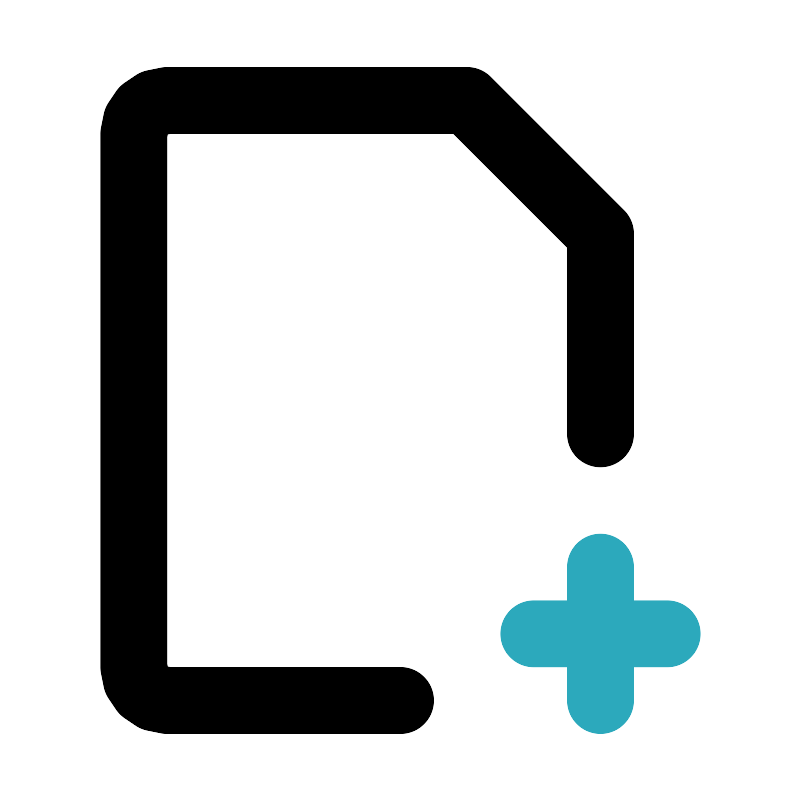 <svg fill="#000000" width="800px" height="800px" viewBox="0 0 24 24" id="add-file-4" data-name="Line Color" xmlns="http://www.w3.org/2000/svg" class="icon line-color"><path id="secondary" d="M16,19h4m-2-2v4" style="fill: none; stroke: rgb(44, 169, 188); stroke-linecap: round; stroke-linejoin: round; stroke-width: 2;"></path><path id="primary" d="M18,13V7L14,3H5A1,1,0,0,0,4,4V20a1,1,0,0,0,1,1h7" style="fill: none; stroke: rgb(0, 0, 0); stroke-linecap: round; stroke-linejoin: round; stroke-width: 2;"></path></svg>