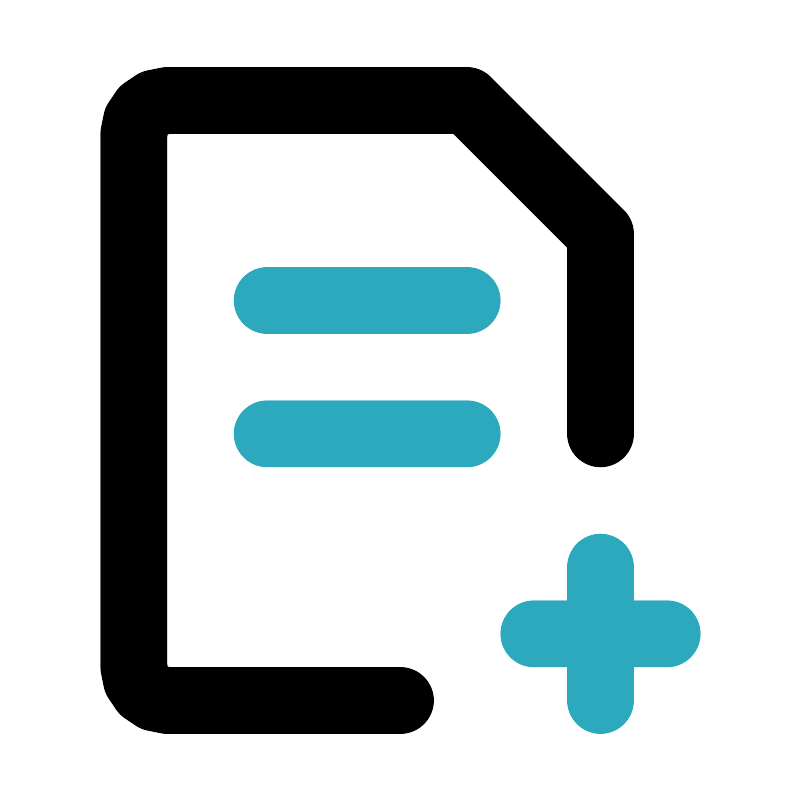 <svg fill="#000000" width="800px" height="800px" viewBox="0 0 24 24" id="add-file-6" data-name="Line Color" xmlns="http://www.w3.org/2000/svg" class="icon line-color"><path id="secondary" d="M16,19h4m-2-2v4M8,13h6m0-4H8" style="fill: none; stroke: rgb(44, 169, 188); stroke-linecap: round; stroke-linejoin: round; stroke-width: 2;"></path><path id="primary" d="M12,21H5a1,1,0,0,1-1-1V4A1,1,0,0,1,5,3h9l4,4v6" style="fill: none; stroke: rgb(0, 0, 0); stroke-linecap: round; stroke-linejoin: round; stroke-width: 2;"></path></svg>