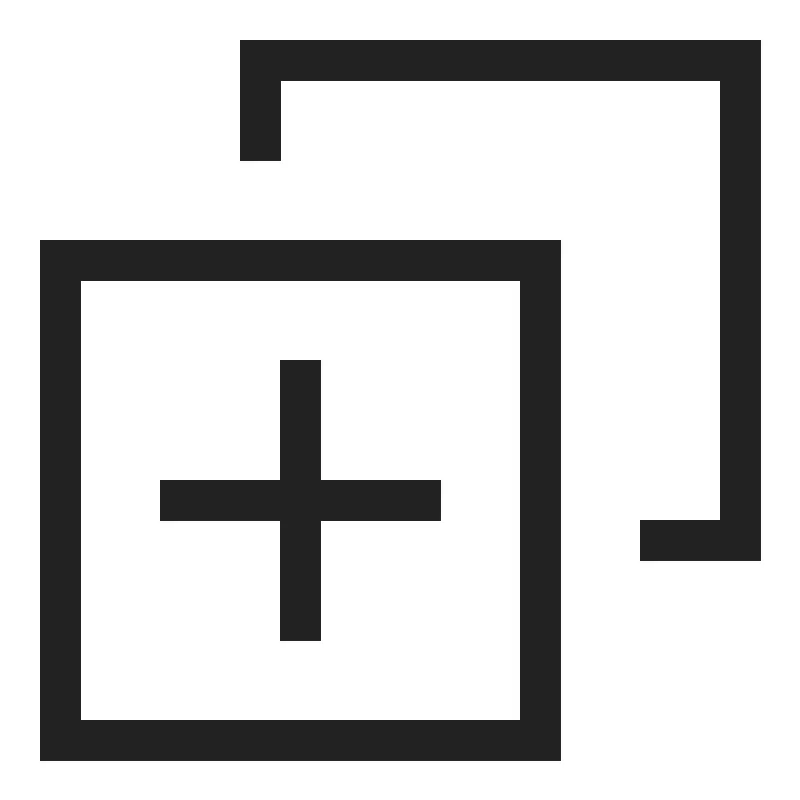 <path d="M 6 1 L 6 4 L 7 4 L 7 2 L 18 2 L 18 13 L 16 13 L 16 14 L 19 14 L 19 1 L 6 1 z M 1 6 L 1 19 L 14 19 L 14 6 L 1 6 z M 2 7 L 13 7 L 13 18 L 2 18 L 2 7 z M 7 9 L 7 12 L 4 12 L 4 13 L 7 13 L 7 16 L 8 16 L 8 13 L 11 13 L 11 12 L 8 12 L 8 9 L 7 9 z " style="fill:#222222; fill-opacity:1; stroke:none; stroke-width:0px;"/>
