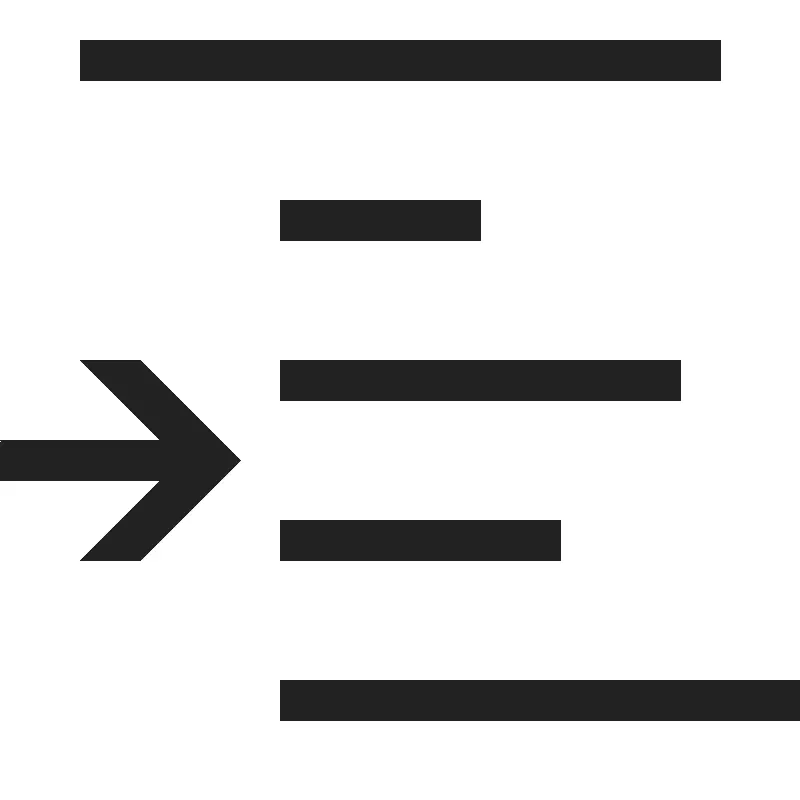 <path d="M 2 1 L 2 2 L 18 2 L 18 1 L 2 1 z M 7 5 L 7 6 L 12 6 L 12 5 L 7 5 z M 2 9 L 4 11 L 0 11 L 0 12 L 4 12 L 2 14 L 3.5 14 L 6 11.5 L 3.5 9 L 2 9 z M 7 9 L 7 10 L 17 10 L 17 9 L 7 9 z M 7 13 L 7 14 L 14 14 L 14 13 L 7 13 z M 7 17 L 7 18 L 20 18 L 20 17 L 7 17 z " style="fill:#222222; fill-opacity:1; stroke:none; stroke-width:0px;"/>