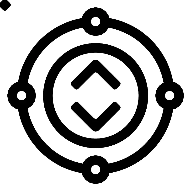<svg width="800px" height="800px" viewBox="0 0 80 80" data-name="Layer 1" id="Layer_1" xmlns="http://www.w3.org/2000/svg"><defs><style>.cls-1{fill:none;stroke:#000000;stroke-linecap:round;stroke-linejoin:round;stroke-width:4px;}</style></defs><title/><path class="cls-1" d="M43.974,9.262C43.979,9.174,44,9.09,44,9a4,4,0,0,0-8,0c0,.09.021.174.026.262a3.981,3.981,0,0,0,7.947,0Z"/><path class="cls-1" d="M70.738,43.974c.088.006.172.026.262.026a4,4,0,0,0,0-8c-.09,0-.174.021-.262.026a3.981,3.981,0,0,0,0,7.947Z"/><path class="cls-1" d="M43.974,70.738c.006.088.026.172.026.262a4,4,0,0,1-8,0c0-.09.021-.174.026-.262a3.981,3.981,0,0,1,7.947,0Z"/><path class="cls-1" d="M9.262,43.974a3.981,3.981,0,0,0,0-7.947C9.174,36.021,9.09,36,9,36a4,4,0,0,0,0,8C9.09,44,9.174,43.979,9.262,43.974Z"/><path class="cls-1" d="M70.738,36.026A31,31,0,0,0,43.974,9.262"/><path class="cls-1" d="M70.738,43.974A31,31,0,0,1,43.974,70.738"/><path class="cls-1" d="M9.262,36.026A31,31,0,0,1,36.026,9.262"/><path class="cls-1" d="M36.026,70.738A31,31,0,0,1,9.262,43.974"/><circle class="cls-1" cx="40" cy="40" r="20"/><path d="M47.293,37.121l-6.586-6.586a1,1,0,0,0-1.414,0l-6.586,6.586a1,1,0,0,1-1.414,0l-1.414-1.414a1,1,0,0,1,0-1.414l8.707-8.707a2,2,0,0,1,2.828,0l8.707,8.707a1,1,0,0,1,0,1.414l-1.414,1.414A1,1,0,0,1,47.293,37.121Z"/><path d="M40,55a1.994,1.994,0,0,1-1.414-.586l-8.707-8.707a1,1,0,0,1,0-1.414l1.414-1.414a1,1,0,0,1,1.414,0l6.586,6.586a1,1,0,0,0,1.414,0l6.586-6.586a1,1,0,0,1,1.414,0l1.414,1.414a1,1,0,0,1,0,1.414l-8.707,8.707A1.994,1.994,0,0,1,40,55Z"/><rect height="4" rx="1" ry="1" transform="translate(40 -16.569) rotate(45)" width="4" x="38" y="38"/><rect height="4" rx="1" ry="1" transform="translate(36.192 -7.376) rotate(45)" width="4" x="25" y="38"/><rect height="4" rx="1" ry="1" transform="translate(43.808 -25.761) rotate(45)" width="4" x="51" y="38"/></svg>