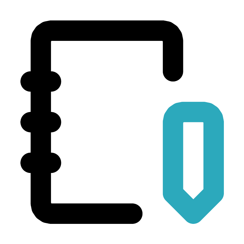 <svg fill="#000000" width="800px" height="800px" viewBox="0 0 24 24" id="agenda-2" data-name="Line Color" xmlns="http://www.w3.org/2000/svg" class="icon line-color"><path id="secondary" d="M18,11h2a1,1,0,0,1,1,1v7l-2,2-2-2V12A1,1,0,0,1,18,11Z" style="fill: none; stroke: rgb(44, 169, 188); stroke-linecap: round; stroke-linejoin: round; stroke-width: 2;"></path><path id="primary" d="M17,7V4a1,1,0,0,0-1-1H5A1,1,0,0,0,4,4V20a1,1,0,0,0,1,1h8" style="fill: none; stroke: rgb(0, 0, 0); stroke-linecap: round; stroke-linejoin: round; stroke-width: 2;"></path><path id="primary-2" data-name="primary" d="M3,8H5M3,12H5M3,16H5" style="fill: none; stroke: rgb(0, 0, 0); stroke-linecap: round; stroke-linejoin: round; stroke-width: 2;"></path></svg>