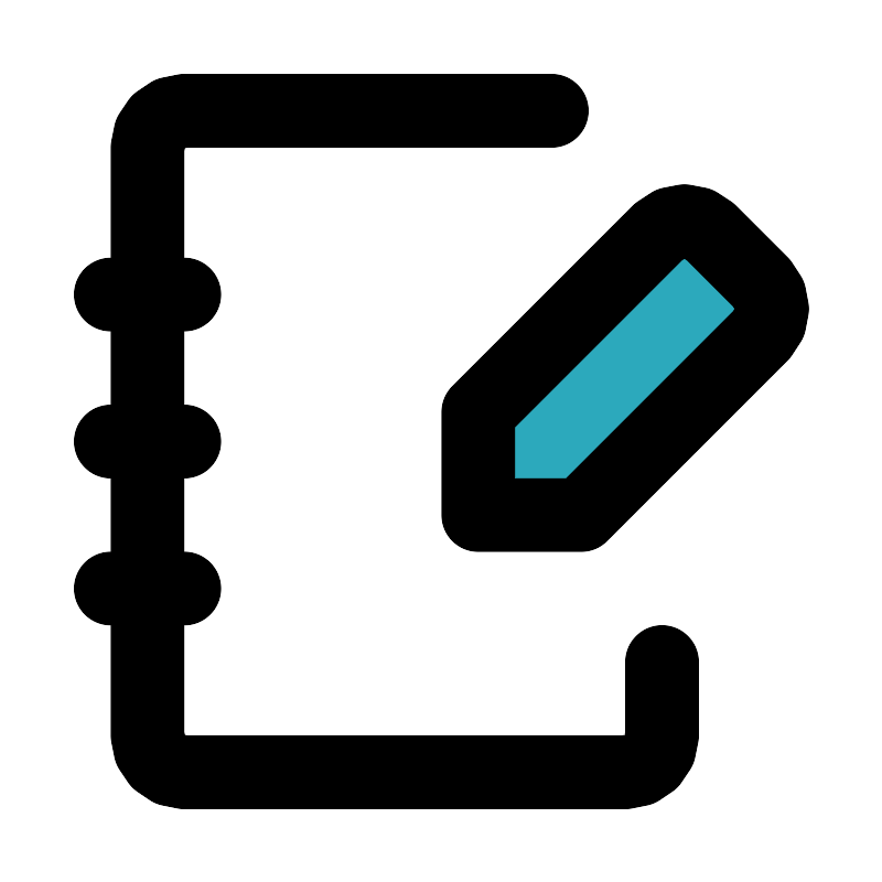 <svg fill="#000000" width="800px" height="800px" viewBox="0 0 24 24" id="agenda-pencil" data-name="Flat Line" xmlns="http://www.w3.org/2000/svg" class="icon flat-line"><path id="secondary" d="M20.71,7.69l-1.4-1.4a1,1,0,0,0-1.4,0L13,11.2V14h2.8l4.91-4.91A1,1,0,0,0,20.71,7.69Z" style="fill: rgb(44, 169, 188); stroke-width: 2;"></path><path id="primary" d="M18,18v2a1,1,0,0,1-1,1H5a1,1,0,0,1-1-1V4A1,1,0,0,1,5,3H15" style="fill: none; stroke: rgb(0, 0, 0); stroke-linecap: round; stroke-linejoin: round; stroke-width: 2;"></path><path id="primary-2" data-name="primary" d="M20.71,9.09,15.8,14H13V11.2l4.91-4.91a1,1,0,0,1,1.4,0l1.4,1.4A1,1,0,0,1,20.71,9.09ZM3,8H5M3,12H5M3,16H5" style="fill: none; stroke: rgb(0, 0, 0); stroke-linecap: round; stroke-linejoin: round; stroke-width: 2;"></path></svg>
