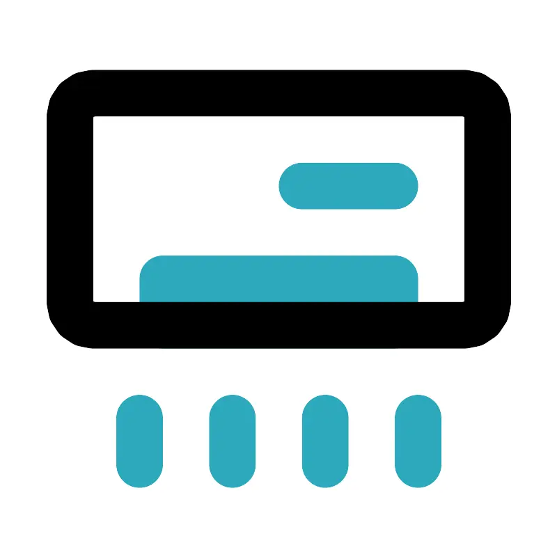 <svg fill="#000000" width="800px" height="800px" viewBox="0 0 24 24" id="air-conditioner" data-name="Line Color" xmlns="http://www.w3.org/2000/svg" class="icon line-color"><path id="secondary" d="M13,8h4M6,18v2m4-2v2m4-2v2m4-2v2m-1-8H7v2H17Z" style="fill: none; stroke: rgb(44, 169, 188); stroke-linecap: round; stroke-linejoin: round; stroke-width: 2;"></path><rect id="primary" x="3" y="4" width="18" height="10" rx="1" style="fill: none; stroke: rgb(0, 0, 0); stroke-linecap: round; stroke-linejoin: round; stroke-width: 2;"></rect></svg>