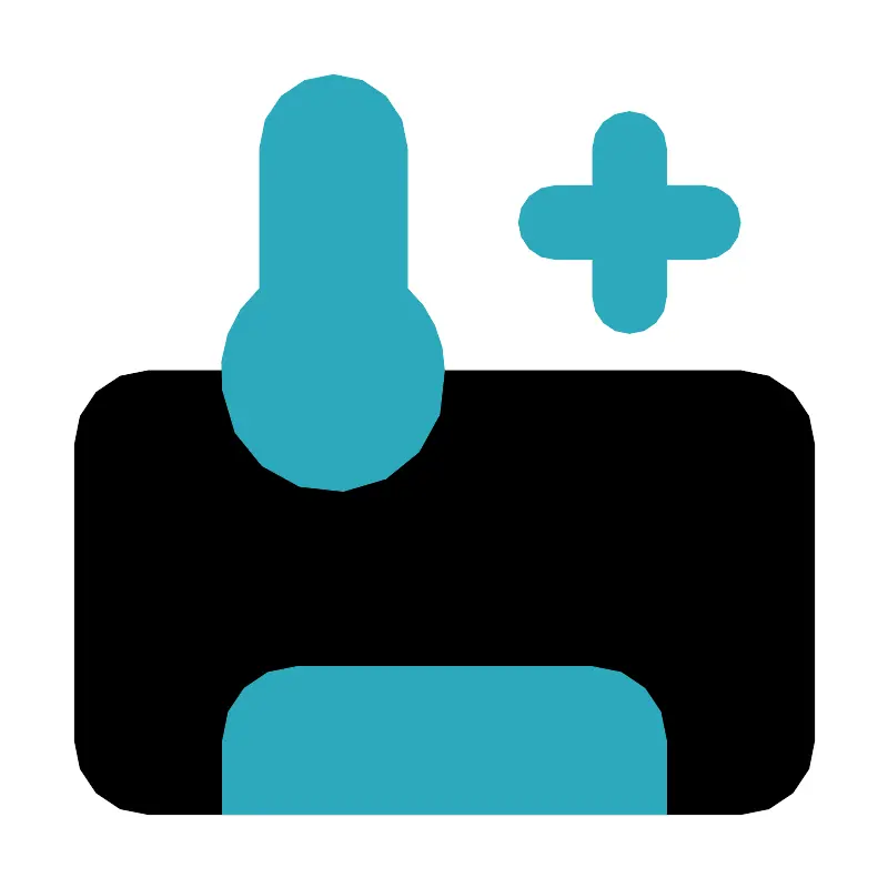 <svg fill="#000000" width="800px" height="800px" viewBox="0 0 24 24" id="air-conditioner-temperature-plus" data-name="Flat Color" xmlns="http://www.w3.org/2000/svg" class="icon flat-color"><rect id="primary" x="2" y="10" width="20" height="12" rx="2" style="fill: rgb(0, 0, 0);"></rect><path id="secondary" d="M18,20v2H6V20a2,2,0,0,1,2-2h8A2,2,0,0,1,18,20ZM11,7.78V4A2,2,0,0,0,9,2H9A2,2,0,0,0,7,4V7.78a3,3,0,0,0-1,2.75A3,3,0,0,0,12,10,3,3,0,0,0,11,7.78ZM19,5H18V4a1,1,0,0,0-2,0V5H15a1,1,0,0,0,0,2h1V8a1,1,0,0,0,2,0V7h1a1,1,0,0,0,0-2Z" style="fill: rgb(44, 169, 188);"></path></svg>