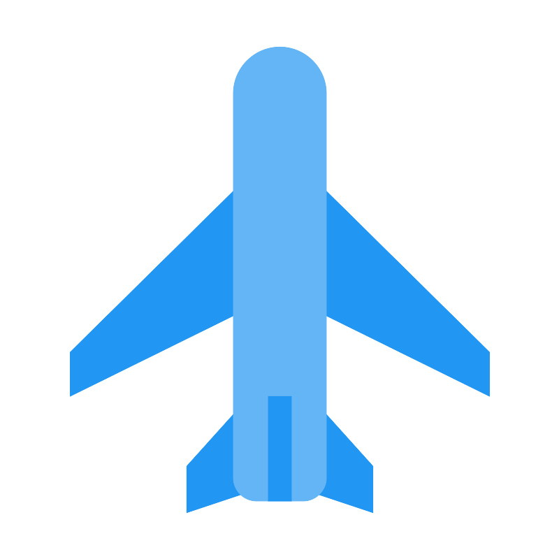 <svg width="800px" height="800px" viewBox="0 0 1024 1024" class="icon" version="1.1" xmlns="http://www.w3.org/2000/svg"><path d="M682.666667 938.666667l-128-42.666667 12.8-170.666667 115.2 128zM896 725.333333l-320-157.866666-4.266667-149.333334-4.266666-98.133333L896 644.266667zM341.333333 938.666667l128-42.666667-12.8-170.666667-115.2 128zM128 725.333333l320-157.866666 4.266667-149.333334 4.266666-98.133333L128 644.266667z" fill="#2196F3" /><path d="M512 85.333333c-46.933333 0-85.333333 38.4-85.333333 85.333334v704c0 23.466667 19.2 42.666667 42.666666 42.666666h85.333334c23.466667 0 42.666667-19.2 42.666666-42.666666V170.666667c0-46.933333-38.4-85.333333-85.333333-85.333334z" fill="#64B5F6" /><path d="M490.666667 725.333333h42.666666v192h-42.666666z" fill="#2196F3" /></svg>