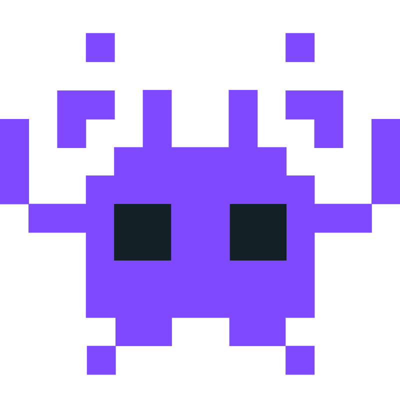 <svg width="800px" height="800px" viewBox="0 0 512 512" xmlns="http://www.w3.org/2000/svg" xmlns:xlink="http://www.w3.org/1999/xlink" aria-hidden="true" role="img" class="iconify iconify--fxemoji" preserveAspectRatio="xMidYMid meet"><path fill="#7F4AFF" d="M111.051 442.516h36.658v36.658h-36.658v-36.658zm-1.291-290.235h36.658v-36.658H73.102v73.316h36.658v-36.658zm36.658-109.974H109.76v36.658h36.658V42.307zm255.715 146.632h36.658v-73.316h-73.316v36.658h36.658v36.658zm0-146.632h-36.658v36.658h36.658V42.307zm73.209 109.867v108.549H402.314v-36.23h-36.082V188.28h-36.97v-73.316h-36.658v73.316h-73.316v-73.316H182.63v73.316h-36.658v36.213H109.76v36.23H36.658V152.281H0v108.656h36.299v36.444H109.76v108.904h37.949v36.23h71.77v-36.23h73.898v36.23h71.77v-36.23h37.166V297.381H475.448V260.83H512V152.174h-36.658zM365.475 479.173h36.658v-36.658h-36.658v36.658z"></path><path fill="#132028" d="M218.573 332.941h-72.6v-72.002h72.6v72.002zm147.659-72.002h-72.201v72.002h72.201v-72.002z"></path></svg>