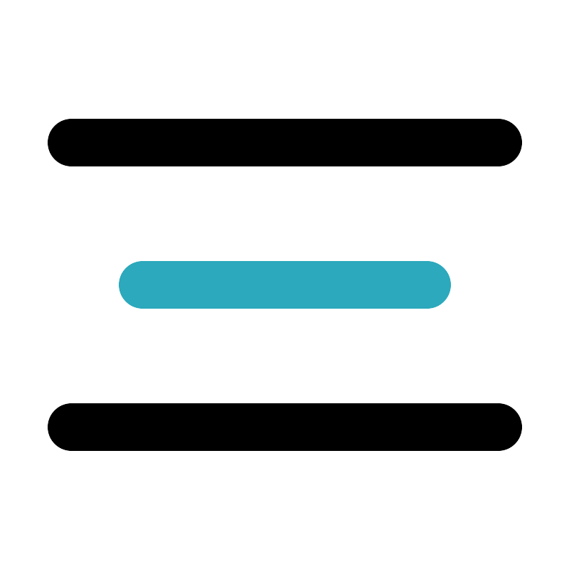 <svg fill="#000000" width="800px" height="800px" viewBox="0 0 24 24" id="align-center" data-name="Line Color" xmlns="http://www.w3.org/2000/svg" class="icon line-color"><line id="secondary" x1="6" y1="12" x2="18" y2="12" style="fill: none; stroke: rgb(44, 169, 188); stroke-linecap: round; stroke-linejoin: round; stroke-width: 2;"></line><path id="primary" d="M3,6H21M3,18H21" style="fill: none; stroke: rgb(0, 0, 0); stroke-linecap: round; stroke-linejoin: round; stroke-width: 2;"></path></svg>