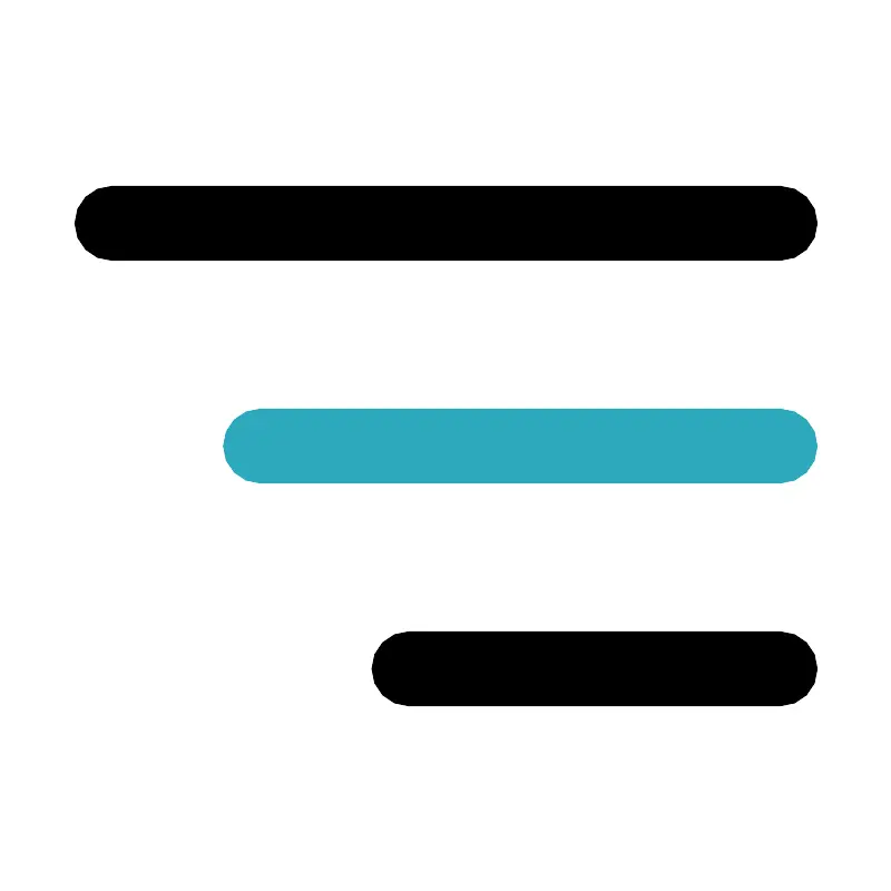 <svg fill="#000000" width="800px" height="800px" viewBox="0 0 24 24" id="align-right-2" data-name="Flat Color" xmlns="http://www.w3.org/2000/svg" class="icon flat-color"><path id="secondary" d="M21,13H7a1,1,0,0,1,0-2H21a1,1,0,0,1,0,2Z" style="fill: rgb(44, 169, 188);"></path><path id="primary" d="M21,19H11a1,1,0,0,1,0-2H21a1,1,0,0,1,0,2ZM21,7H3A1,1,0,0,1,3,5H21a1,1,0,0,1,0,2Z" style="fill: rgb(0, 0, 0);"></path></svg>