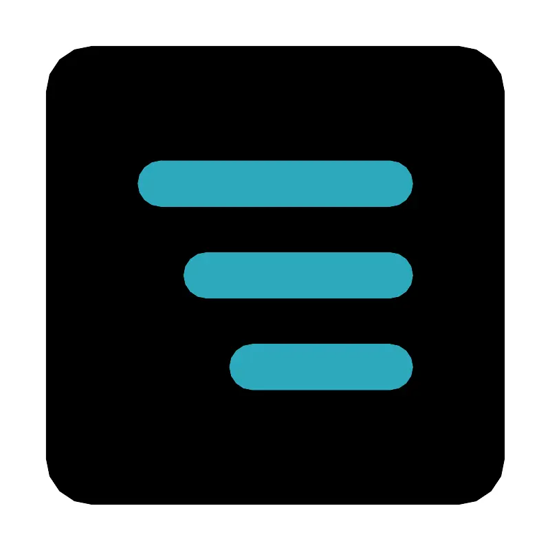 <svg fill="#000000" width="800px" height="800px" viewBox="0 0 24 24" id="align-right-square-2" data-name="Flat Color" xmlns="http://www.w3.org/2000/svg" class="icon flat-color"><rect id="primary" x="2" y="2" width="20" height="20" rx="2" style="fill: rgb(0, 0, 0);"></rect><path id="secondary" d="M17,17H11a1,1,0,0,1,0-2h6a1,1,0,0,1,0,2Zm0-4H9a1,1,0,0,1,0-2h8a1,1,0,0,1,0,2Zm0-4H7A1,1,0,0,1,7,7H17a1,1,0,0,1,0,2Z" style="fill: rgb(44, 169, 188);"></path></svg>