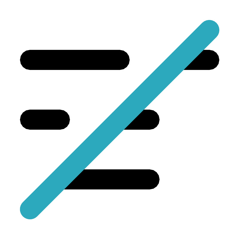 <svg fill="#000000" width="800px" height="800px" viewBox="0 0 24 24" id="alignment-left-slash" data-name="Flat Color" xmlns="http://www.w3.org/2000/svg" class="icon flat-color"><path id="primary" d="M15,19H6a1,1,0,0,1,0-2h9a1,1,0,0,1,0,2Zm0-6H12a1,1,0,0,1,0-2h3a1,1,0,0,1,0,2ZM6,13H3a1,1,0,0,1,0-2H6a1,1,0,0,1,0,2ZM21,7H18a1,1,0,0,1,0-2h3a1,1,0,0,1,0,2ZM12,7H3A1,1,0,0,1,3,5h9a1,1,0,0,1,0,2Z" style="fill: rgb(0, 0, 0);"></path><path id="secondary" d="M3,22a1,1,0,0,1-.71-.29,1,1,0,0,1,0-1.42l18-18a1,1,0,1,1,1.42,1.42l-18,18A1,1,0,0,1,3,22Z" style="fill: rgb(44, 169, 188);"></path></svg>