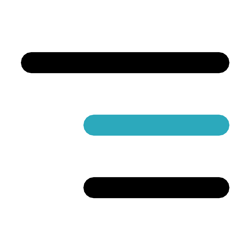 <svg fill="#000000" width="800px" height="800px" viewBox="0 0 24 24" id="alignment-right" data-name="Flat Color" xmlns="http://www.w3.org/2000/svg" class="icon flat-color"><path id="secondary" d="M21,13H9a1,1,0,0,1,0-2H21a1,1,0,0,1,0,2Z" style="fill: rgb(44, 169, 188);"></path><path id="primary" d="M21,19H9a1,1,0,0,1,0-2H21a1,1,0,0,1,0,2ZM21,7H3A1,1,0,0,1,3,5H21a1,1,0,0,1,0,2Z" style="fill: rgb(0, 0, 0);"></path></svg>