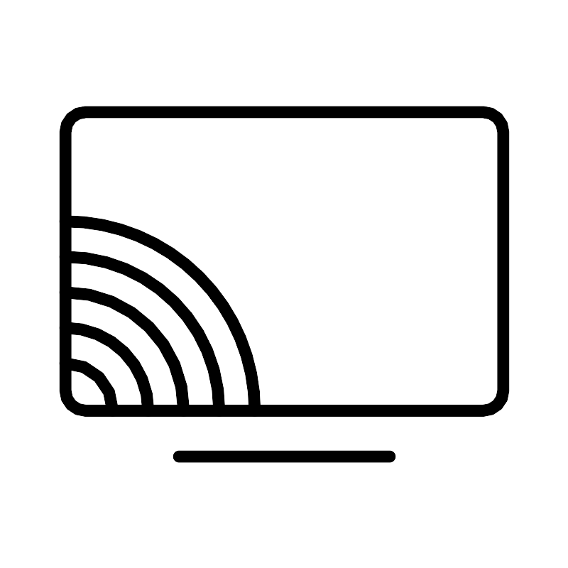 <svg width="800px" height="800px" viewBox="0 0 48 48" xmlns="http://www.w3.org/2000/svg"><defs><style>.a{fill:none;stroke:#000000;stroke-linecap:round;stroke-linejoin:round;}</style></defs><rect class="a" x="5.5" y="9.4466" width="37" height="25.2272" rx="1.6818"/><path class="a" d="M15.1018,38.5534H32.8981"/><path class="a" d="M5.5,30.6747a3.9992,3.9992,0,0,1,3.9992,3.9991h0"/><path class="a" d="M5.5,27.6753a6.9985,6.9985,0,0,1,6.9986,6.9985h0"/><path class="a" d="M5.5,18.6772A15.9966,15.9966,0,0,1,21.4967,34.6738"/><path class="a" d="M5.5,24.6759a9.9979,9.9979,0,0,1,9.9979,9.9979h0"/><path class="a" d="M5.5,21.6765A12.9974,12.9974,0,0,1,18.4973,34.6738"/></svg>