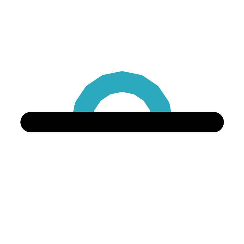<svg fill="#000000" width="800px" height="800px" viewBox="0 0 24 24" id="angel-180" data-name="Line Color" xmlns="http://www.w3.org/2000/svg" class="icon line-color"><path id="secondary" d="M16,12a4,4,0,0,0-8,0" style="fill: none; stroke: rgb(44, 169, 188); stroke-linecap: round; stroke-linejoin: round; stroke-width: 2;"></path><line id="primary" x1="3" y1="12" x2="21" y2="12" style="fill: none; stroke: rgb(0, 0, 0); stroke-linecap: round; stroke-linejoin: round; stroke-width: 2;"></line></svg>