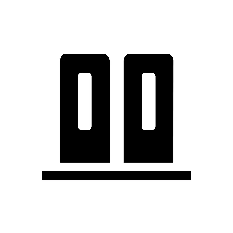 <svg fill="#000000" width="800px" height="800px" viewBox="0 0 100 100" data-name="Layer 1" id="Layer_1" xmlns="http://www.w3.org/2000/svg"><title/><path d="M46.9,25.91A2.91,2.91,0,0,0,44,23H28.66a2.91,2.91,0,0,0-2.92,2.91V69.62H46.9ZM39.31,54.3a1.5,1.5,0,0,1-1.5,1.5h-3a1.5,1.5,0,0,1-1.49-1.5V32.63a1.5,1.5,0,0,1,1.49-1.5h3a1.5,1.5,0,0,1,1.5,1.5Zm35-28.39A2.91,2.91,0,0,0,71.34,23H56a2.91,2.91,0,0,0-2.92,2.91V69.62H74.26ZM66.67,54.3a1.5,1.5,0,0,1-1.49,1.5h-3a1.5,1.5,0,0,1-1.5-1.5V32.63a1.5,1.5,0,0,1,1.5-1.5h3a1.5,1.5,0,0,1,1.49,1.5ZM82,73.3V77H18V73.3Z"/></svg>
