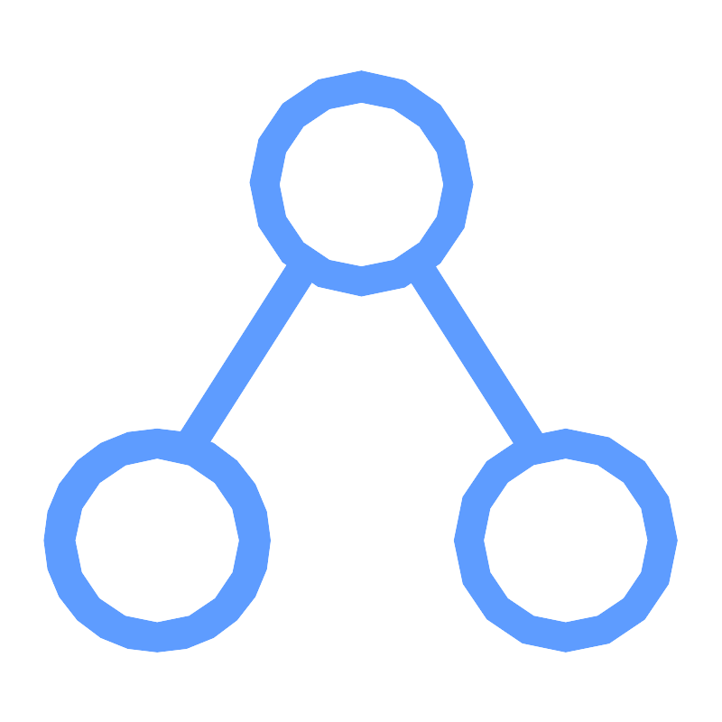<svg width="800px" height="800px" viewBox="0 0 32 32" xmlns="http://www.w3.org/2000/svg"><title>file_type_apib2</title><path d="M18.053,12.267l4.76,7.467.373.56,1.12-.653-.373-.56-4.76-7.467L18.8,10.96l-1.12.653.373.653Zm-5.227-.747-4.76,7.467-.373.56,1.12.653.373-.467,4.76-7.467.373-.56L13.2,10.96l-.373.56Z" style="fill:#5e9cff"/><path d="M16,13.107A4.979,4.979,0,0,0,20.947,8.16,5.061,5.061,0,0,0,16,3.12a4.979,4.979,0,0,0-4.947,4.947A5.061,5.061,0,0,0,16,13.107ZM16,11.8a3.644,3.644,0,0,1-3.64-3.64,3.64,3.64,0,1,1,7.28,0A3.644,3.644,0,0,1,16,11.8Z" style="fill:#5e9cff"/><path d="M25.053,28.88a4.947,4.947,0,1,0-4.947-4.947A4.979,4.979,0,0,0,25.053,28.88Zm0-1.307a3.644,3.644,0,0,1-3.64-3.64,3.64,3.64,0,1,1,7.28,0A3.644,3.644,0,0,1,25.053,27.573Z" style="fill:#5e9cff"/><path d="M6.947,28.88a4.947,4.947,0,1,0,0-9.893,4.947,4.947,0,1,0,0,9.893Zm0-1.307a3.644,3.644,0,0,1-3.64-3.64,3.706,3.706,0,0,1,3.64-3.64,3.706,3.706,0,0,1,3.64,3.64A3.644,3.644,0,0,1,6.947,27.573Z" style="fill:#5e9cff"/><circle cx="6.947" cy="23.933" r="1.68" style="fill:#fff"/></svg>