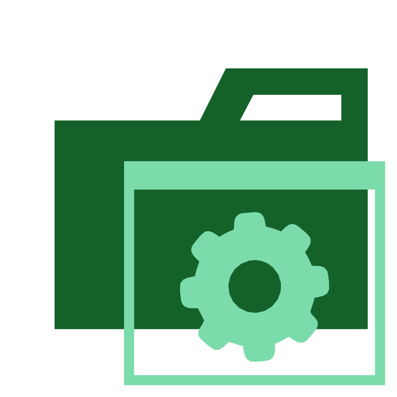 <svg width="800px" height="800px" viewBox="0 0 32 32" xmlns="http://www.w3.org/2000/svg"><title>folder_type_app</title><path d="M27.5,5.5H18.2L16.1,9.7H4.4V26.5H29.6V5.5Zm0,4.2H19.3l1.1-2.1h7.1Z" style="fill:#14622a"/><path d="M10,12.983V31.017H31V12.983ZM30.219,30.236H10.781V15.247H30.219Z" style="fill:#7bdbab"/><path d="M19.981,17.138c.352-.022.768-.15,1.071.107.277.255.264.669.352,1.009a6.92,6.92,0,0,1,1.234.393c.26-.229.486-.564.856-.6.329-.023.567.235.8.425a3.072,3.072,0,0,1,.685.679c.168.445-.2.822-.422,1.158a7.688,7.688,0,0,1,.55,1.1c.431.027,1.038-.07,1.241.425a5.126,5.126,0,0,1,.142,1.492c-.11.531-.743.551-1.174.646-.072.393-.235.76-.342,1.143.117.336.533.5.612.872.085.405-.275.693-.5.981-.216.228-.39.56-.727.621-.438.079-.754-.295-1.109-.479a6.271,6.271,0,0,1-1.1.564c-.031.452.082,1.117-.452,1.316a5.036,5.036,0,0,1-1.518.117c-.525-.168-.494-.8-.612-1.242-.39-.072-.748-.256-1.134-.329-.352.249-.639.759-1.141.631a3.557,3.557,0,0,1-.851-.627c-.207-.186-.481-.38-.47-.69-.021-.412.392-.666.47-1.04-.14-.338-.352-.643-.486-.988-.366-.033-.784.065-1.1-.16-.295-.2-.278-.6-.321-.91a2.958,2.958,0,0,1,.012-.97c.207-.438.759-.416,1.161-.531a6.482,6.482,0,0,1,.352-1.174c-.235-.276-.574-.5-.655-.878-.046-.345.235-.6.432-.849a2.7,2.7,0,0,1,.7-.7c.44-.146.794.22,1.134.433a5.911,5.911,0,0,1,1.157-.587c.093-.375-.053-.845.269-1.128C19.33,17.129,19.682,17.178,19.981,17.138Zm.117,3.828a2.144,2.144,0,1,0,1.908.566,2.144,2.144,0,0,0-1.908-.566Z" style="fill:#7bdbab"/></svg>