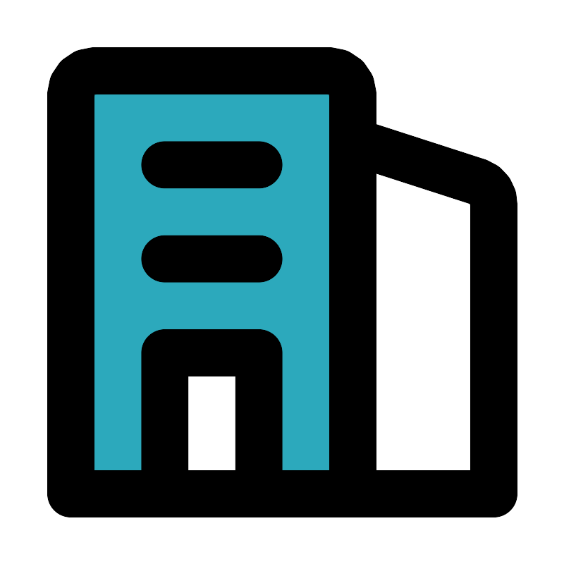 <svg fill="#000000" width="800px" height="800px" viewBox="0 0 24 24" id="appartment-2" data-name="Flat Line" xmlns="http://www.w3.org/2000/svg" class="icon flat-line"><path id="secondary" d="M14,3H4A1,1,0,0,0,3,4V21H7V15h4v6h4V4A1,1,0,0,0,14,3Z" style="fill: rgb(44, 169, 188); stroke-width: 2;"></path><path id="primary" d="M11,21V15H7v6ZM7,7h4M7,11h4m4,10H3V4A1,1,0,0,1,4,3H14a1,1,0,0,1,1,1Zm0,0h6V8.72a1,1,0,0,0-.68-1L15,6Z" style="fill: none; stroke: rgb(0, 0, 0); stroke-linecap: round; stroke-linejoin: round; stroke-width: 2;"></path></svg>