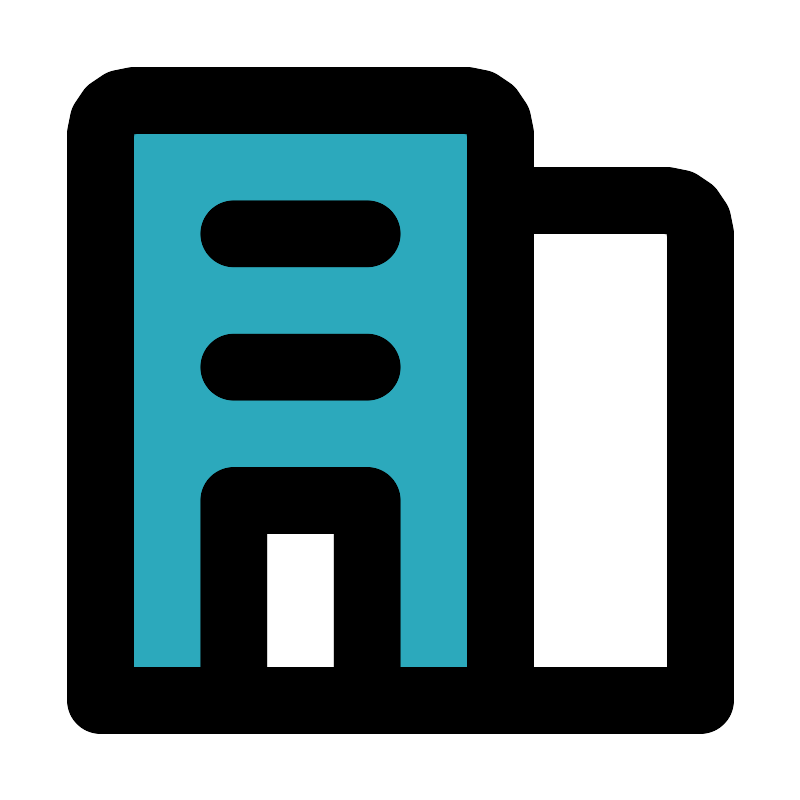 <svg fill="#000000" width="800px" height="800px" viewBox="0 0 24 24" id="appartment" data-name="Flat Line" xmlns="http://www.w3.org/2000/svg" class="icon flat-line"><path id="secondary" d="M14,3H4A1,1,0,0,0,3,4V21H7V15h4v6h4V4A1,1,0,0,0,14,3Z" style="fill: rgb(44, 169, 188); stroke-width: 2;"></path><path id="primary" d="M11,21V15H7v6ZM7,7h4M7,11h4m4,10H3V4A1,1,0,0,1,4,3H14a1,1,0,0,1,1,1Zm0,0h6V7a1,1,0,0,0-1-1H15Z" style="fill: none; stroke: rgb(0, 0, 0); stroke-linecap: round; stroke-linejoin: round; stroke-width: 2;"></path></svg>