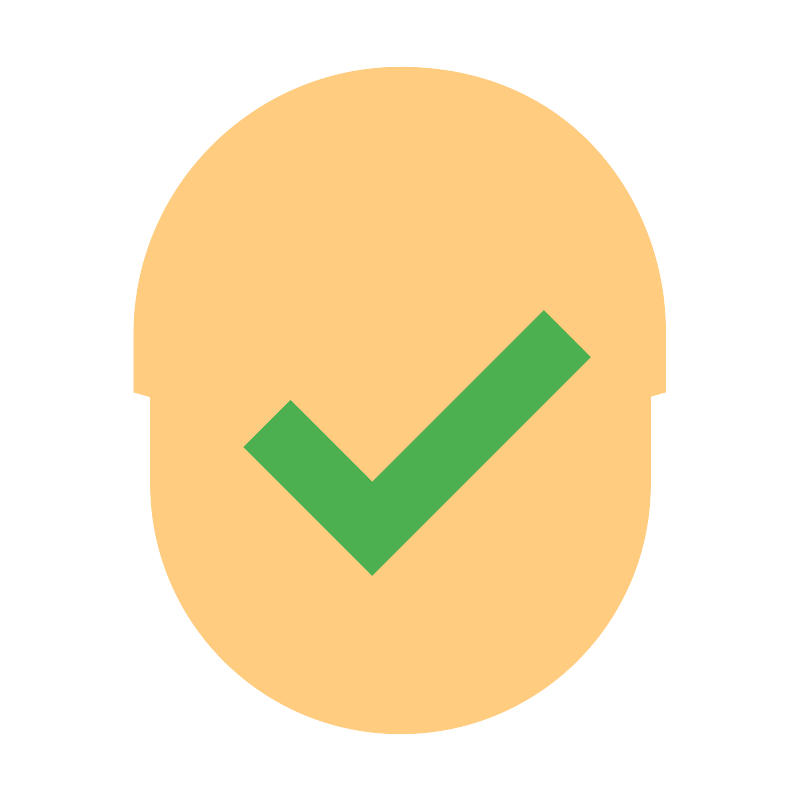 <svg width="800px" height="800px" viewBox="0 0 1024 1024" class="icon" version="1.1" xmlns="http://www.w3.org/2000/svg"><path d="M810.666667 554.666667m-85.333334 0a85.333333 85.333333 0 1 0 170.666667 0 85.333333 85.333333 0 1 0-170.666667 0Z" fill="#FFCC80" /><path d="M213.333333 554.666667m-85.333333 0a85.333333 85.333333 0 1 0 170.666667 0 85.333333 85.333333 0 1 0-170.666667 0Z" fill="#FFCC80" /><path d="M832 405.333333c0-270.933333-640-177.066667-640 0v213.333334c0 177.066667 142.933333 320 320 320s320-142.933333 320-320V405.333333z" fill="#FFCC80" /><path d="M512 85.333333C324.266667 85.333333 170.666667 238.933333 170.666667 426.666667v74.666666l44.8 12.8V405.333333l416-134.4 174.933333 134.4v108.8l44.8-12.8V426.666667C853.333333 266.666667 738.133333 85.333333 512 85.333333z" fill="#FFCC80" /><path d="M695.466667 396.8L475.733333 616.533333 371.2 512l-59.733333 59.733333 164.266666 164.266667 279.466667-279.466667z" fill="#4CAF50" /></svg>