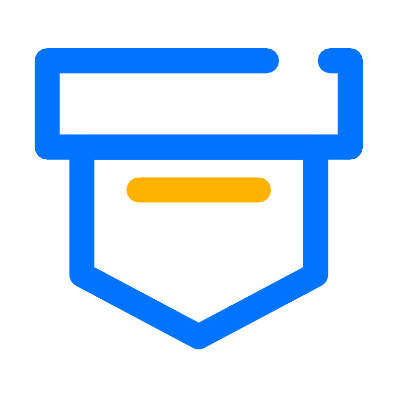 <svg width="800px" height="800px" viewBox="0 0 64 64" data-name="Layer 1" id="Layer_1" xmlns="http://www.w3.org/2000/svg"><defs><style>.cls-1{fill:#0074ff;}.cls-2{fill:#ffb300;}</style></defs><title/><path class="cls-1" d="M56.43,25.67H7.57a2,2,0,0,1-2-2V9.75a2,2,0,0,1,2-2H42.92a2,2,0,0,1,0,4H9.57v9.92H54.43V11.75H53.21a2,2,0,0,1,0-4h3.22a2,2,0,0,1,2,2V23.67A2,2,0,0,1,56.43,25.67Z"/><path class="cls-1" d="M32,56.25a2.1,2.1,0,0,1-.94-.23L12.22,46a2,2,0,0,1-1.06-1.77V23.67a2,2,0,0,1,2-2H50.84a2,2,0,0,1,2,2V44.25A2,2,0,0,1,51.78,46L32.94,56A2.1,2.1,0,0,1,32,56.25ZM15.16,43.05,32,52l16.84-8.94V25.67H15.16Z"/><path class="cls-2" d="M41.64,32.58H22.36a2,2,0,0,1,0-4H41.64a2,2,0,0,1,0,4Z"/></svg>