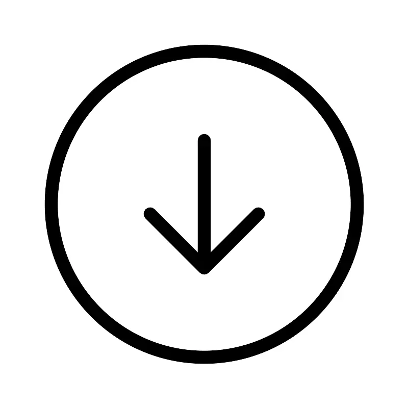 Линия стрелы в круге вниз тонкая