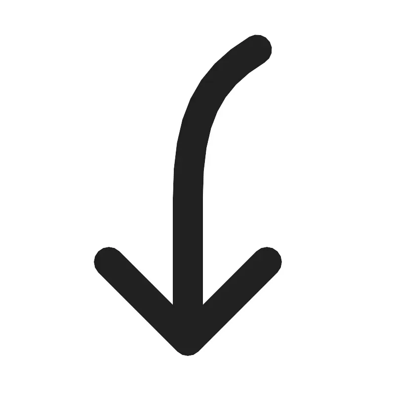 Кривая стрелка вниз влево