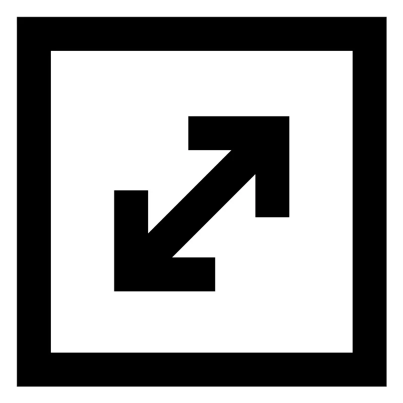 Диагональная стрелка сверху справа внизу слева внутри квадрата (Arrow diagonal top right bottom left square)
