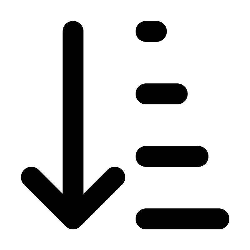 <path d="M7.00012 3V21M7.00012 21L3.00012 17M7.00012 21L11.0001 17M14.0001 21H21.0001M14.0001 15H19.0001M14.0001 9H17.0001M14.0001 3H15.0001" stroke="#000000" stroke-width="2" stroke-linecap="round" stroke-linejoin="round"/>