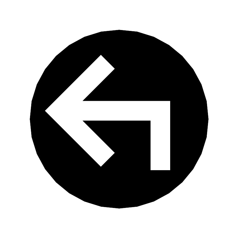 Стрелка на 90 градусов влево из нижнего круга (залитая)