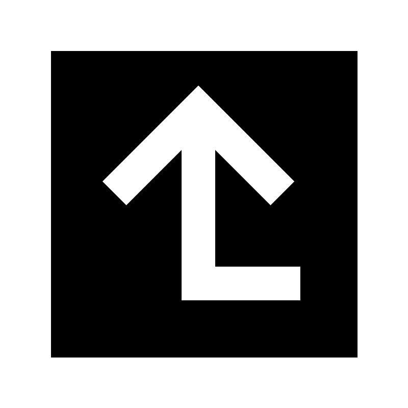 Заполненная стрела на 90 градусов вверх справа из квадрата