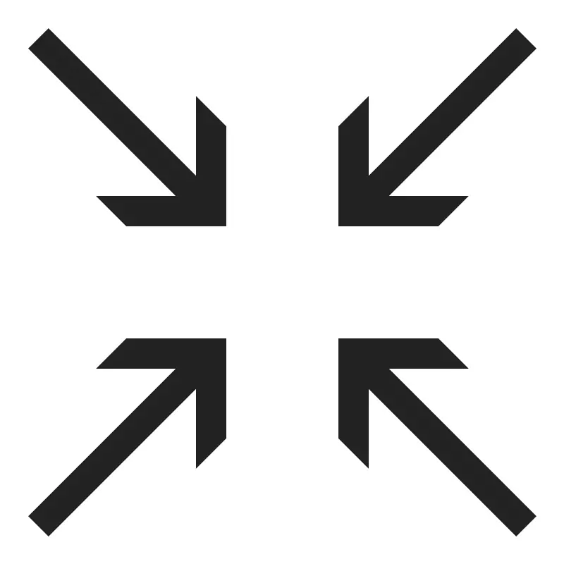 <path d="M 1.7070312 1 L 1 1.7070312 L 6.2324219 6.9394531 L 3.4042969 6.9394531 L 4.4648438 8 L 8 8 L 8 4.4648438 L 6.9394531 3.4042969 L 6.9394531 6.2324219 L 1.7070312 1 z M 18.292969 1 L 13.060547 6.2324219 L 13.060547 3.4042969 L 12 4.4648438 L 12 8 L 15.535156 8 L 16.595703 6.9394531 L 13.767578 6.9394531 L 19 1.7070312 L 18.292969 1 z M 4.4648438 12 L 3.4042969 13.060547 L 6.2324219 13.060547 L 1 18.292969 L 1.7070312 19 L 6.9394531 13.767578 L 6.9394531 16.595703 L 8 15.535156 L 8 12 L 4.4648438 12 z M 12 12 L 12 15.535156 L 13.060547 16.595703 L 13.060547 13.767578 L 18.292969 19 L 19 18.292969 L 13.767578 13.060547 L 16.595703 13.060547 L 15.535156 12 L 12 12 z " style="fill:#222222; fill-opacity:1; stroke:none; stroke-width:0px;"/>