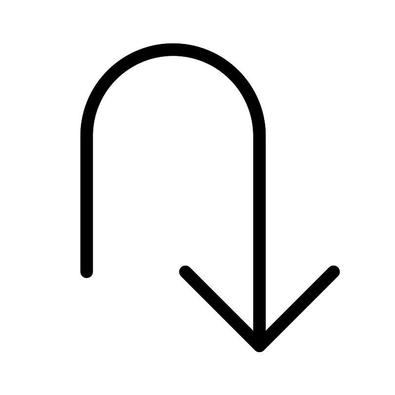 Стрелка u вправо вниз тонкая