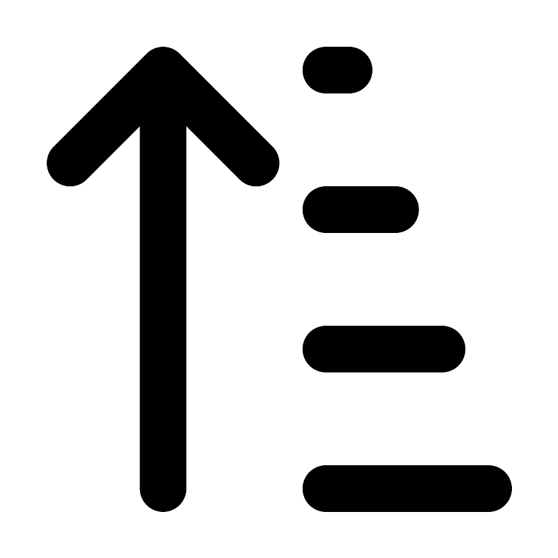 <path d="M7 3V21M7 3L11 7M7 3L3 7M14 3H15M14 9H17M14 15H19M14 21H21" stroke="#000000" stroke-width="2" stroke-linecap="round" stroke-linejoin="round"/>