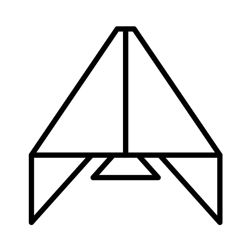 <svg width="800px" height="800px" viewBox="0 0 48 48" xmlns="http://www.w3.org/2000/svg"><defs><style>.a{fill:none;stroke:#000000;stroke-linecap:round;stroke-linejoin:round;}</style></defs><polygon class="a" points="22.38 5.5 24 5.5 24 29.63 5.98 29.63 22.38 5.5"/><polyline class="a" points="5.98 29.63 5.98 42.5 17.5 29.63"/><polyline class="a" points="26.38 29.63 30.22 33.93 24 33.93 17.78 33.93 21.63 29.63"/><polygon class="a" points="25.62 5.5 24 5.5 24 29.63 42.02 29.63 25.62 5.5"/><polyline class="a" points="42.02 29.63 42.02 42.5 30.5 29.63"/></svg>