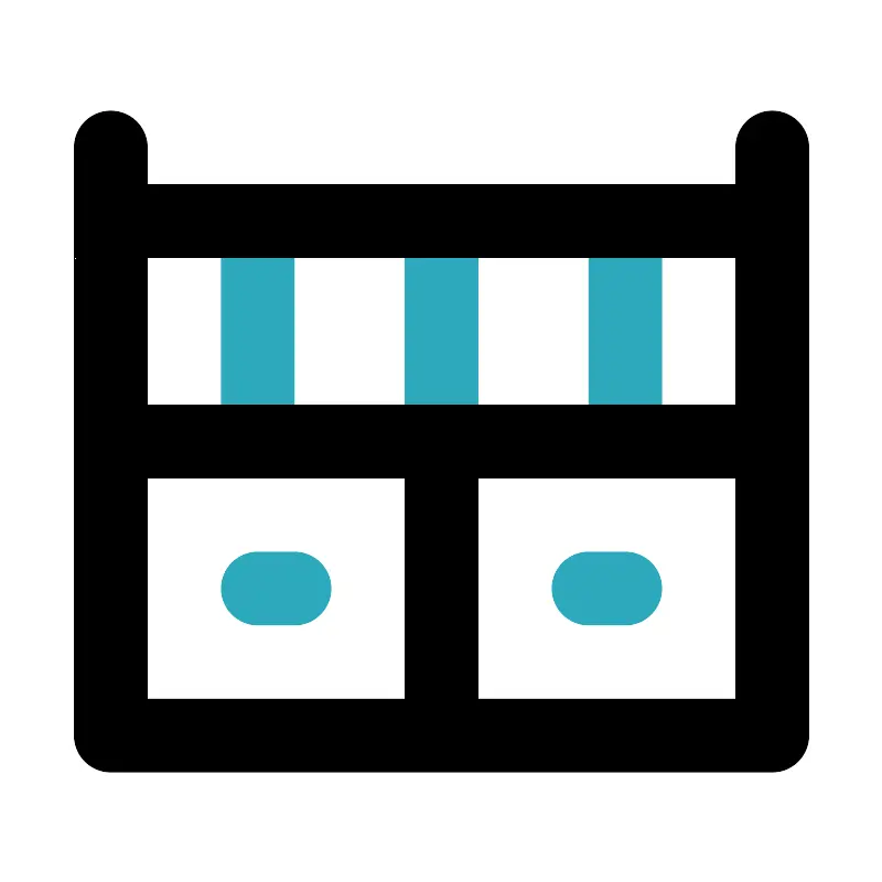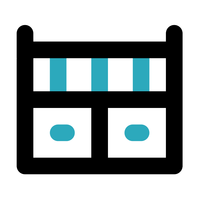<svg fill="#000000" width="800px" height="800px" viewBox="0 0 24 24" id="baby-crib-2" data-name="Line Color" xmlns="http://www.w3.org/2000/svg" class="icon line-color"><path id="secondary" d="M7,16H8m8,0h1M12,6v6m5-6v6M7,12V6" style="fill: none; stroke: rgb(44, 169, 188); stroke-linecap: round; stroke-linejoin: round; stroke-width: 2;"></path><path id="primary" d="M3,20H21V12H3Zm0,0h9V12H3Zm18-8V6H3v6Zm0-6V4M3,6V4" style="fill: none; stroke: rgb(0, 0, 0); stroke-linecap: round; stroke-linejoin: round; stroke-width: 2;"></path></svg>