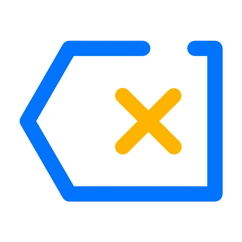 <svg width="800px" height="800px" viewBox="0 0 64 64" data-name="Layer 1" id="Layer_1" xmlns="http://www.w3.org/2000/svg"><defs><style>.cls-1{fill:#0074ff;}.cls-2{fill:#ffb300;}</style></defs><title/><path class="cls-1" d="M56.81,53.25H18.3a2,2,0,0,1-1.73-1L5.46,33a2,2,0,0,1,0-2L16.57,11.75a2,2,0,0,1,1.73-1H37.71a2,2,0,0,1,0,4H19.46L9.5,32l10,17.25H54.81V14.75H51.5a2,2,0,0,1,0-4h5.31a2,2,0,0,1,2,2v38.5A2,2,0,0,1,56.81,53.25Z"/><path class="cls-2" d="M46,40.79a2,2,0,0,1-1.41-.59L31,26.63a2,2,0,0,1,2.83-2.83L47.41,37.38A2,2,0,0,1,46,40.79Z"/><path class="cls-2" d="M32.42,40.79A2,2,0,0,1,31,37.38L44.59,23.8a2,2,0,0,1,2.82,2.83L33.84,40.2A2,2,0,0,1,32.42,40.79Z"/></svg>