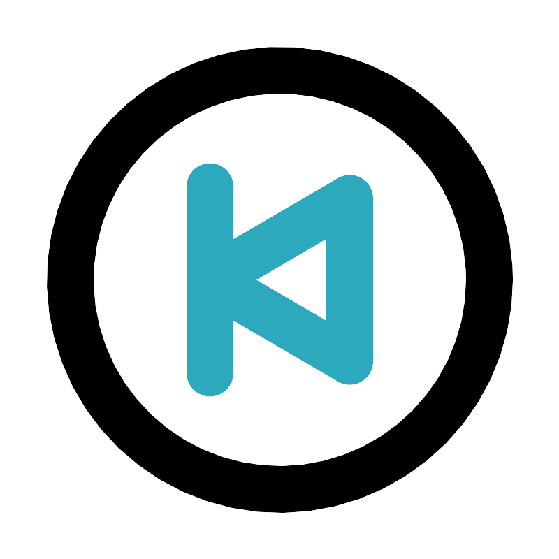 <svg fill="#000000" width="800px" height="800px" viewBox="0 0 24 24" id="backward-circle" data-name="Line Color" xmlns="http://www.w3.org/2000/svg" class="icon line-color"><path id="secondary" d="M9,12l6,3.5v-7ZM9,8v8" style="fill: none; stroke: rgb(44, 169, 188); stroke-linecap: round; stroke-linejoin: round; stroke-width: 2;"></path><circle id="primary" cx="12" cy="12" r="9" style="fill: none; stroke: rgb(0, 0, 0); stroke-linecap: round; stroke-linejoin: round; stroke-width: 2;"></circle></svg>