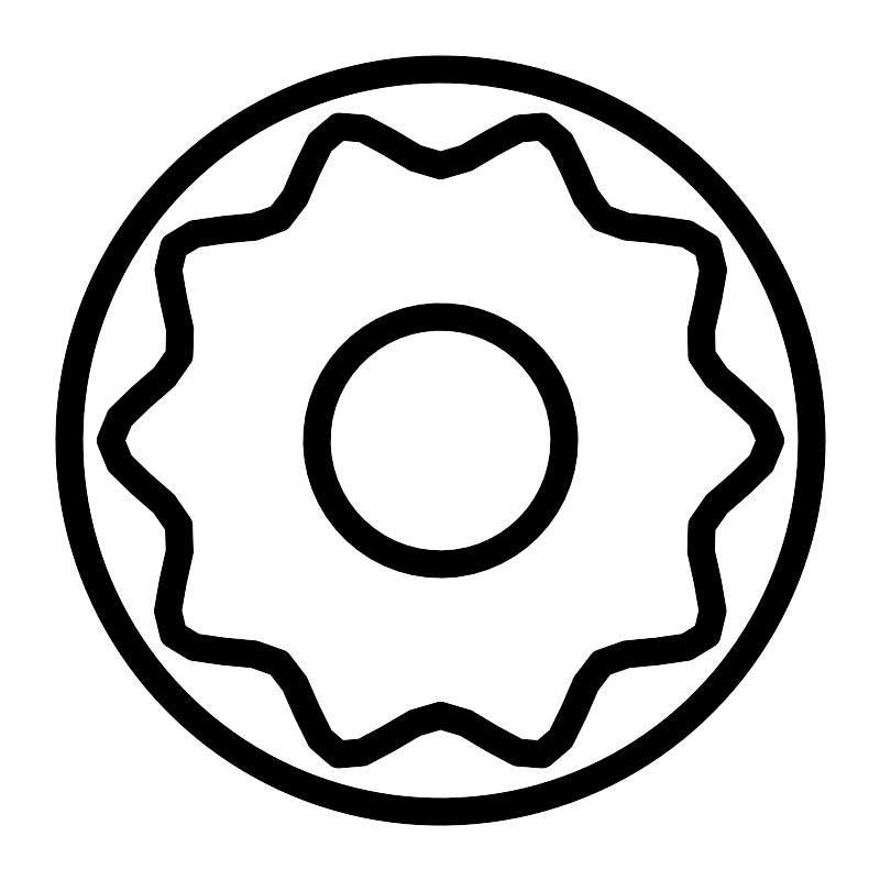 <svg width="800px" height="800px" viewBox="0 0 64 64" xmlns="http://www.w3.org/2000/svg"><defs><style>.a{fill:none;stroke:#000000;stroke-linejoin:round;stroke-width:2px;}</style></defs><title/><circle class="a" cx="32" cy="32" r="27"/><circle class="a" cx="32" cy="32" r="9"/><path class="a" d="M56,32c0,2.37-4.28,4-5,6.18s1.73,6.08.39,7.93-5.8.72-7.66,2.07-2.12,5.93-4.34,6.65S34.37,52,32,52s-5.28,3.53-7.42,2.83-2.49-5.3-4.34-6.65-6.3-.21-7.66-2.07,1.11-5.71.39-7.93S8,34.37,8,32s4.28-4,5-6.18-1.73-6.08-.39-7.93,5.8-.72,7.66-2.07,2.12-5.93,4.34-6.65S29.63,12,32,12s5.28-3.53,7.42-2.83,2.49,5.3,4.34,6.65,6.3.21,7.66,2.07S50.31,23.6,51,25.82,56,29.63,56,32Z"/></svg>