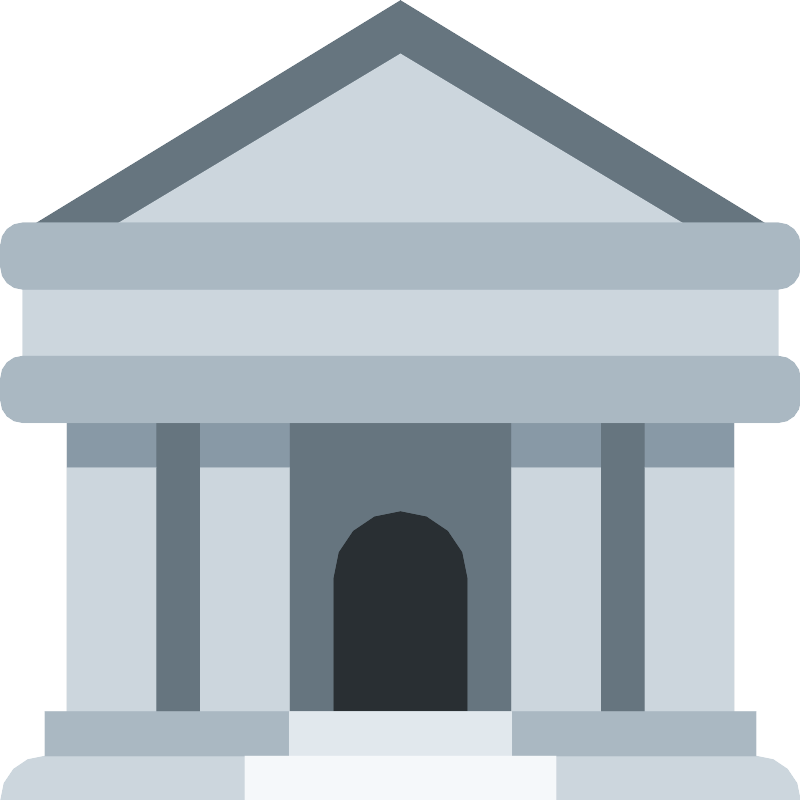 <svg width="800px" height="800px" viewBox="0 0 36 36" xmlns="http://www.w3.org/2000/svg" xmlns:xlink="http://www.w3.org/1999/xlink" aria-hidden="true" role="img" class="iconify iconify--twemoji" preserveAspectRatio="xMidYMid meet"><path fill="#66757F" d="M3 16h30v18H3z"></path><path fill="#CCD6DD" d="M2 34h32a2 2 0 0 1 2 2H0a2 2 0 0 1 2-2z"></path><path fill="#292F33" d="M18 23a3 3 0 0 0-3 3v6h6v-6a3 3 0 0 0-3-3z"></path><path fill="#CCD6DD" d="M3 21h4v11H3zm6 0h4v11H9zm20 0h4v11h-4zm-6 0h4v11h-4z"></path><path fill="#AAB8C2" d="M2 32h32v2H2z"></path><path fill="#66757F" d="M36 11L18 0L0 11z"></path><path fill="#CCD6DD" d="M18 2.4L2 12v4h32v-4z"></path><path fill="#8899A6" d="M3 19h4v2H3zm6 0h4v2H9zm14 0h4v2h-4zm6 0h4v2h-4z"></path><path fill="#CCD6DD" d="M1 12h34v5H1z"></path><path fill="#AAB8C2" d="M36 12a1 1 0 0 1-1 1H1a1 1 0 0 1-1-1v-1a1 1 0 0 1 1-1h34a1 1 0 0 1 1 1v1zm0 6a1 1 0 0 1-1 1H1a1 1 0 0 1-1-1v-1a1 1 0 0 1 1-1h34a1 1 0 0 1 1 1v1z"></path><path fill="#E1E8ED" d="M13 32h10v2H13z"></path><path fill="#F5F8FA" d="M11 34h14v2H11z"></path></svg>