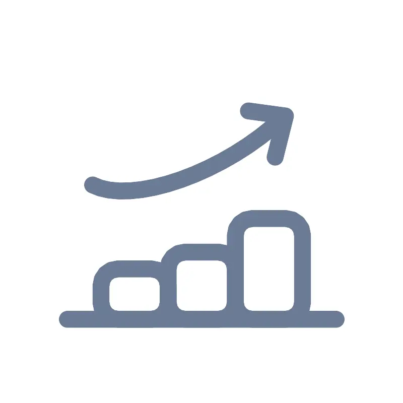 <svg width="800px" height="800px" viewBox="0 0 24 24" fill="none" xmlns="http://www.w3.org/2000/svg"><path d="M14 14C14 13.4477 14.4477 13 15 13H17C17.5523 13 18 13.4477 18 14V18C18 18.5523 17.5523 19 17 19H15C14.4477 19 14 18.5523 14 18V14Z" stroke="#6B7B94" stroke-linecap="round" stroke-linejoin="round"/><path d="M10 16C10 15.4477 10.4477 15 11 15H13C13.5523 15 14 15.4477 14 16V18C14 18.5523 13.5523 19 13 19H11C10.4477 19 10 18.5523 10 18V16Z" stroke="#6B7B94" stroke-linecap="round" stroke-linejoin="round"/><path d="M6 17C6 16.4477 6.44772 16 7 16H9C9.55228 16 10 16.4477 10 17V18C10 18.5523 9.55228 19 9 19H7C6.44772 19 6 18.5523 6 18V17Z" stroke="#6B7B94" stroke-linecap="round" stroke-linejoin="round"/><path d="M4 19H20" stroke="#6B7B94" stroke-linecap="round" stroke-linejoin="round"/><path d="M5.5 11C6.0529 11.285 6.81216 11.4045 7.72169 11.3498C8.63123 11.295 9.6678 11.0674 10.7548 10.6836C11.8418 10.2999 12.9515 9.76988 14.0019 9.13275C15.0523 8.49563 16.0166 7.76767 16.8235 7.00266M14.7802 6.59182L16.9845 6.89165L16.369 9.3436" stroke="#6B7B94" stroke-linecap="round" stroke-linejoin="round"/></svg>