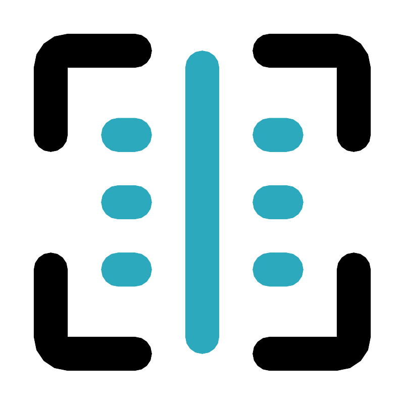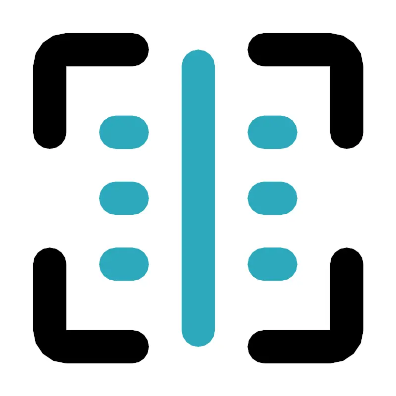 <svg fill="#000000" width="800px" height="800px" viewBox="0 0 24 24" id="barcode" data-name="Flat Color" xmlns="http://www.w3.org/2000/svg" class="icon flat-color"><path id="secondary" d="M12,21a1,1,0,0,1-1-1V4a1,1,0,0,1,2,0V20A1,1,0,0,1,12,21Zm5-4H16a1,1,0,0,1,0-2h1a1,1,0,0,1,0,2ZM8,17H7a1,1,0,0,1,0-2H8a1,1,0,0,1,0,2Zm9-4H16a1,1,0,0,1,0-2h1a1,1,0,0,1,0,2ZM8,13H7a1,1,0,0,1,0-2H8a1,1,0,0,1,0,2Zm9-4H16a1,1,0,0,1,0-2h1a1,1,0,0,1,0,2ZM8,9H7A1,1,0,0,1,7,7H8A1,1,0,0,1,8,9Z" style="fill: rgb(44, 169, 188);"></path><path id="primary" d="M21,9a1,1,0,0,1-1-1V4H16a1,1,0,0,1,0-2h4a2,2,0,0,1,2,2V8A1,1,0,0,1,21,9Zm1,11V16a1,1,0,0,0-2,0v4H16a1,1,0,0,0,0,2h4A2,2,0,0,0,22,20ZM4,8V4H8A1,1,0,0,0,8,2H4A2,2,0,0,0,2,4V8A1,1,0,0,0,4,8ZM9,21a1,1,0,0,0-1-1H4V16a1,1,0,0,0-2,0v4a2,2,0,0,0,2,2H8A1,1,0,0,0,9,21Z" style="fill: rgb(0, 0, 0);"></path></svg>