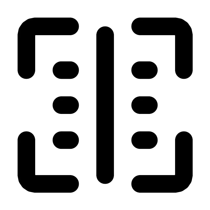 <svg fill="#000000" width="800px" height="800px" viewBox="0 0 24 24" id="barcode" data-name="Flat Line" xmlns="http://www.w3.org/2000/svg" class="icon flat-line"><path id="primary" d="M12,4V20M17,8H16m1,4H16M7,8H8m9,8H16M7,16H8M7,12H8" style="fill: none; stroke: rgb(0, 0, 0); stroke-linecap: round; stroke-linejoin: round; stroke-width: 2;"></path><path id="primary-2" data-name="primary" d="M16,3h4a1,1,0,0,1,1,1V8" style="fill: none; stroke: rgb(0, 0, 0); stroke-linecap: round; stroke-linejoin: round; stroke-width: 2;"></path><path id="primary-3" data-name="primary" d="M16,21h4a1,1,0,0,0,1-1V16" style="fill: none; stroke: rgb(0, 0, 0); stroke-linecap: round; stroke-linejoin: round; stroke-width: 2;"></path><path id="primary-4" data-name="primary" d="M8,3H4A1,1,0,0,0,3,4V8" style="fill: none; stroke: rgb(0, 0, 0); stroke-linecap: round; stroke-linejoin: round; stroke-width: 2;"></path><path id="primary-5" data-name="primary" d="M3,16v4a1,1,0,0,0,1,1H8" style="fill: none; stroke: rgb(0, 0, 0); stroke-linecap: round; stroke-linejoin: round; stroke-width: 2;"></path></svg>
