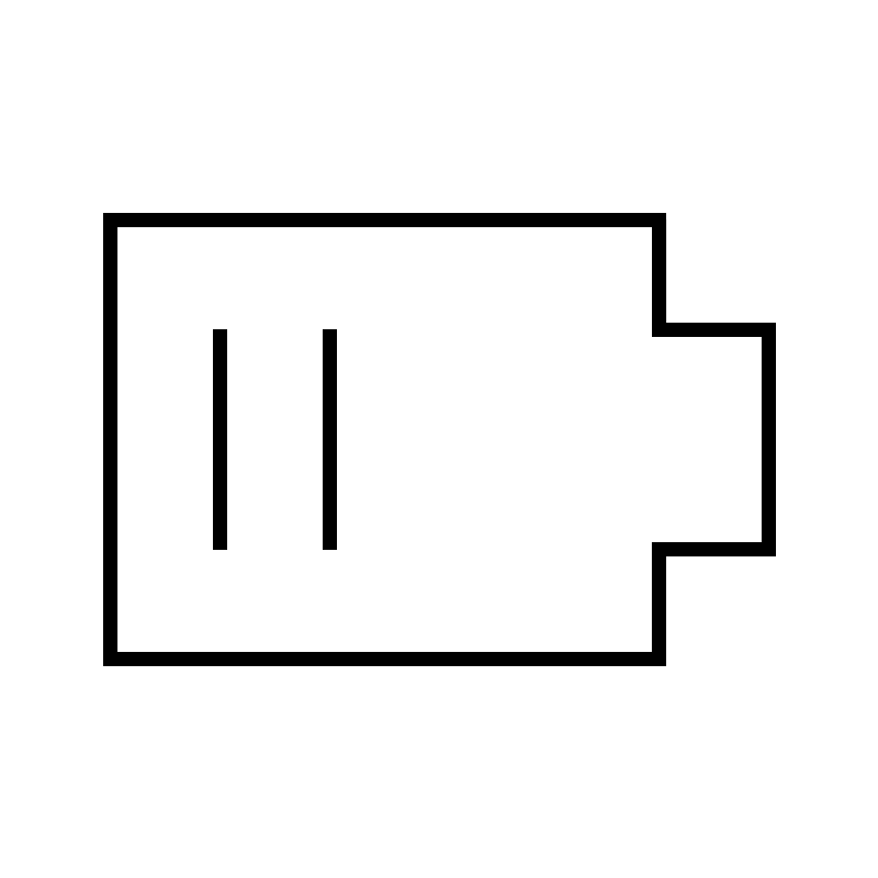 <svg width="800px" height="800px" viewBox="0 0 64 64" xmlns="http://www.w3.org/2000/svg" fill="none" stroke="#000000"><line x1="16" y1="24" x2="16" y2="40"/><line x1="24" y1="24" x2="24" y2="40"/><polygon points="48 24 48 16 8 16 8 48 48 48 48 40 56 40 56 24 48 24"/></svg>