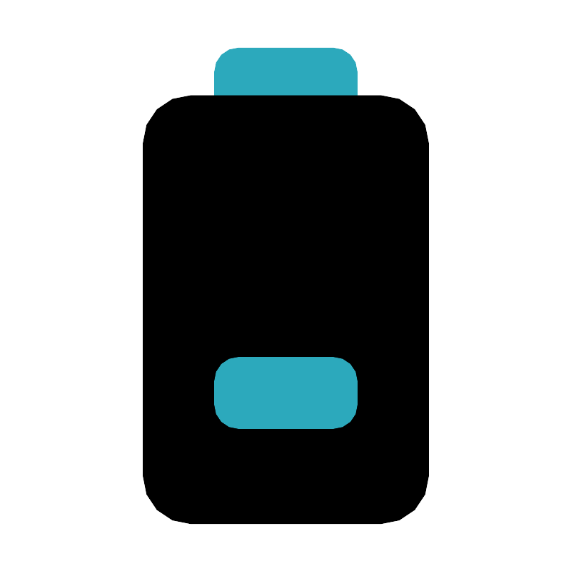 <svg fill="#000000" width="800px" height="800px" viewBox="0 0 24 24" id="battery-10" data-name="Flat Color" xmlns="http://www.w3.org/2000/svg" class="icon flat-color"><rect id="secondary" x="9" y="2" width="6" height="4" rx="1" style="fill: rgb(44, 169, 188);"></rect><rect id="primary" x="6" y="4" width="12" height="18" rx="2" style="fill: rgb(0, 0, 0);"></rect><rect id="secondary-2" data-name="secondary" x="9" y="15" width="6" height="3" rx="1" style="fill: rgb(44, 169, 188);"></rect></svg>